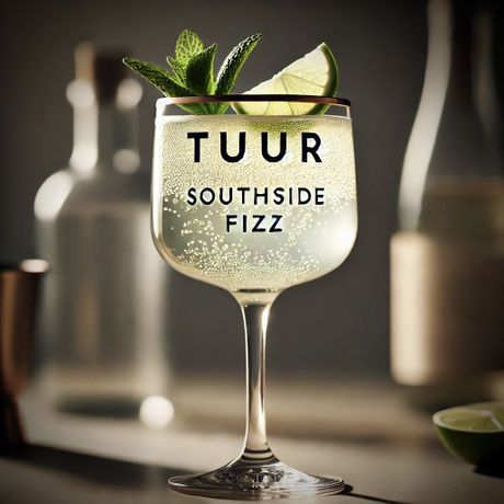 Deze versie van de klassieke Southside Fizz is een verfrissende cocktail op basis van gin, verse munt, citroen en suikersiroop, aangevuld met bruiswater. Het is de bruisende variant van de klassieke Southside, met een lichte en sprankelende afdronk. Perfect als dorstlesser met een frisse, kruidige twist. Maar hieronder al een échte ultra low alcohol TUUR Cocktail.