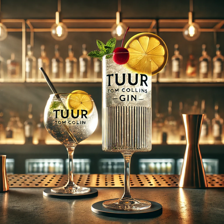 Een Tom Collins is een klassieke, verfrissende cocktail die naam maakte in de late 19e eeuw en is in wezen Gin Fizz maar dan geserveerd in een groter glas en is gemaakt met gin, citroensap, suikersiroop en bruiswater. Het resultaat is een lichte, citrusachtige longdrink met een zacht zoet-zuur balans en een fijne sprankeling. Ideaal als dorstlesser. Maar nu in een ultra low alcohol TUUR versie.