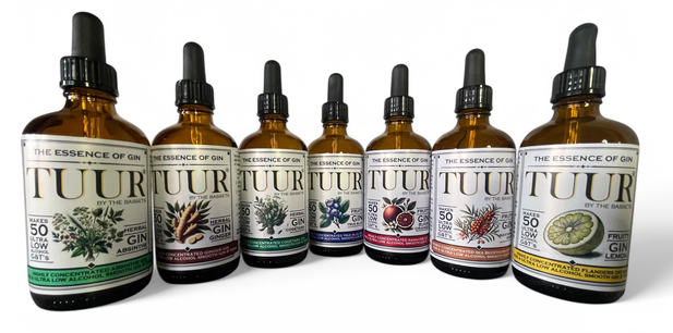 TUUR biedt een vernieuwende kijk op een ultra low en low alcohol Gin & Tonic of Cocktail. Met vakmanschap gedistilleerd in kleine pot-stills van The Bassets Craft Distillery in Ruiselede (Wingene), brengen onze master distillers de natuur tot leven in elke druppel. TUUR heeft door zijn unieke stookproces een botanische concentratie die vele malen hoger ligt dan een normale gin. En, niet onbelangrijk, TUUR is PUUR NATUUR, zonder additieven of bewaarmiddelen. Dat is The Essence of Gin,dat is TUUR.